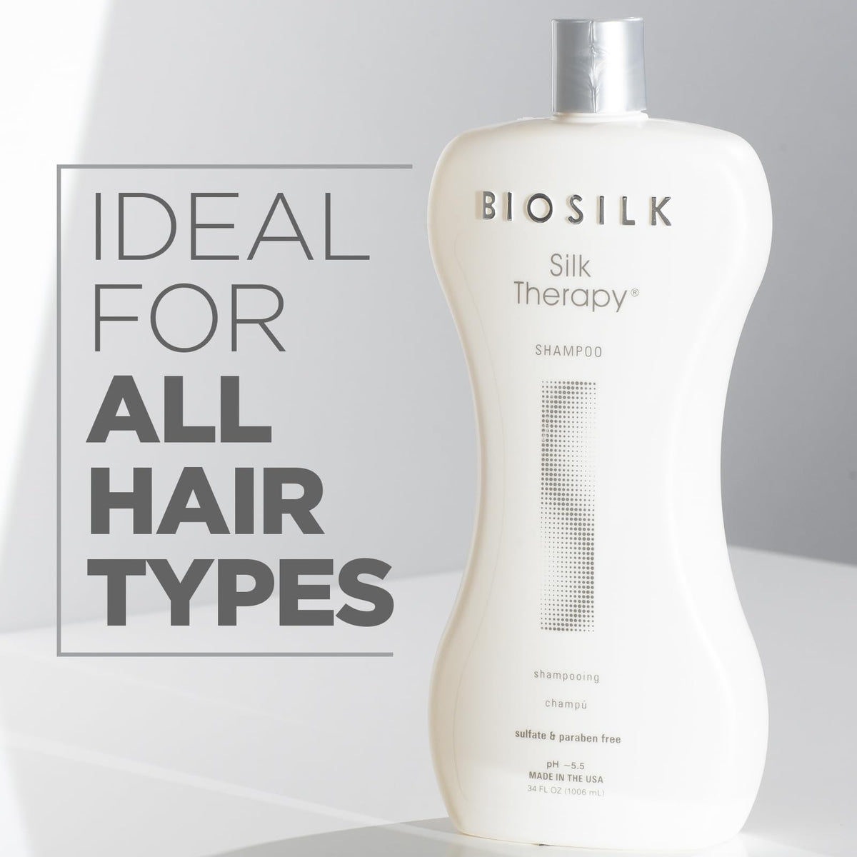 BioSilk Silk Therapy Shampoo, Gentle Hair Cleanser Delivers Healthy & Shiny Hair, Great For All Hair Types, Sulfate, Paraben, & Cruelty-Free, 34 Oz