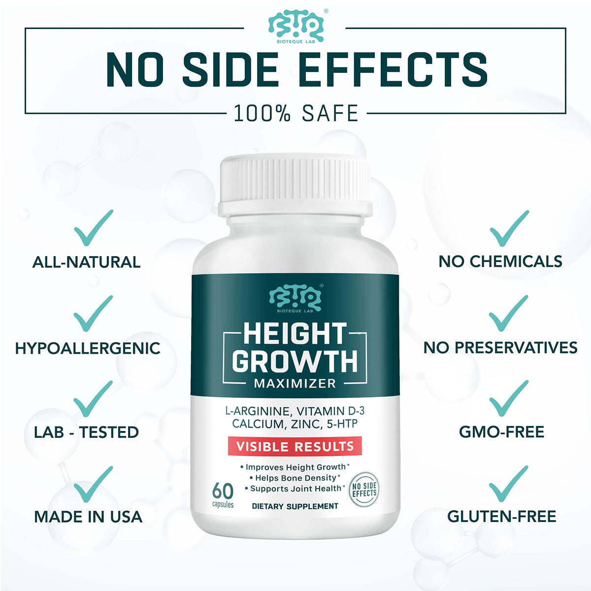 Promote healthy bone growth with BIOTEQUELAB Height Growth Maximizer. These calcium, Vitamin D3, and Zinc blend pills support bone strength and density in kids and teens. GMO-free, gluten-free, and made in the USA for quality assurance.