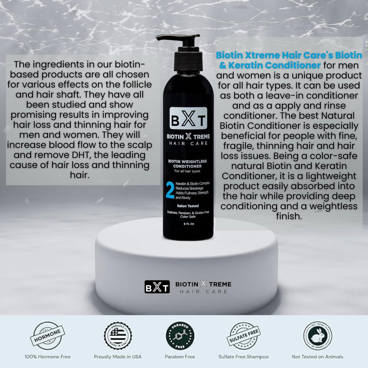 Biotin X Treme Natural Hair Growth Biotin and Keratin Conditioner for Thinning Hair - Strengthens, Smooths, and DHT Blocker - Color-Safe, Sulfate, Paraben, and Gluten-Free for Fine and Damaged Hair