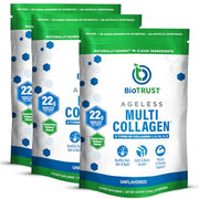 BioTrust Ageless Multi Collagen Peptides Powder – 5 Types (I, II, III, V, X) – Unflavored Collagen Powder for Women & Men – Hydrolyzed Protein – Grass Fed Beef, Fish, Chicken, Eggshell Membrane, 3-pk