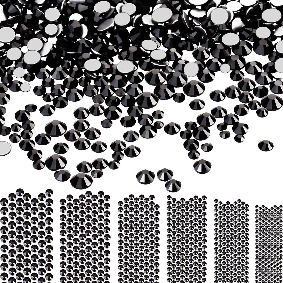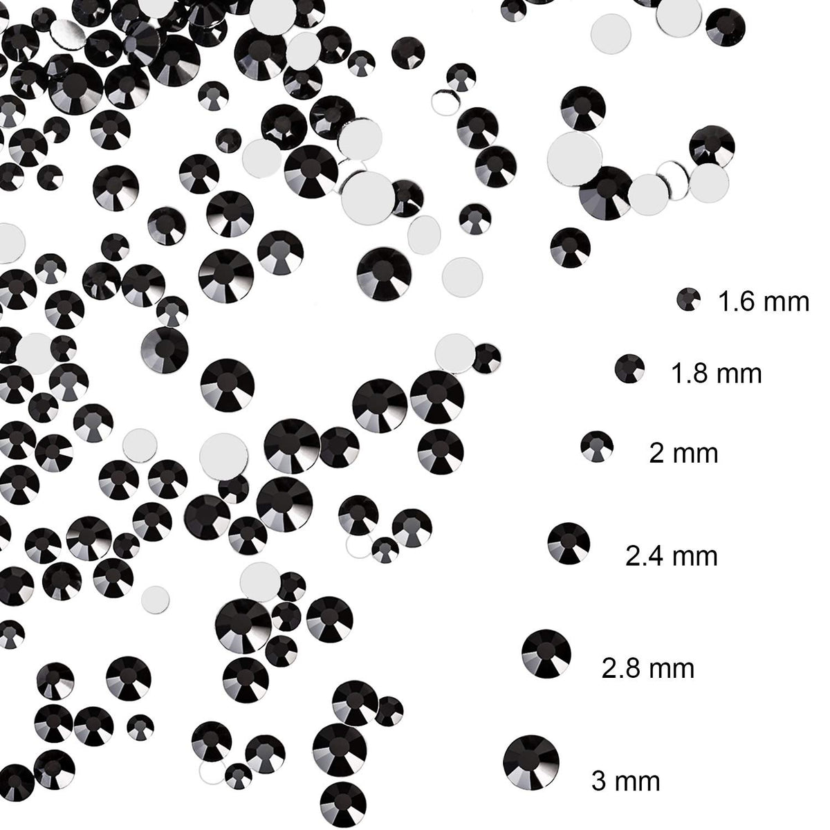 Black, Mixed Ss4 5 6 8 10 12: Bememo 3456 Pieces Nail Crystals Ab Nail Art Rhinestones Round Beads Flatback Glass Charms Gems Stones, 6 Sizes for Nails Decoration Makeup Clothes Shoes (Black