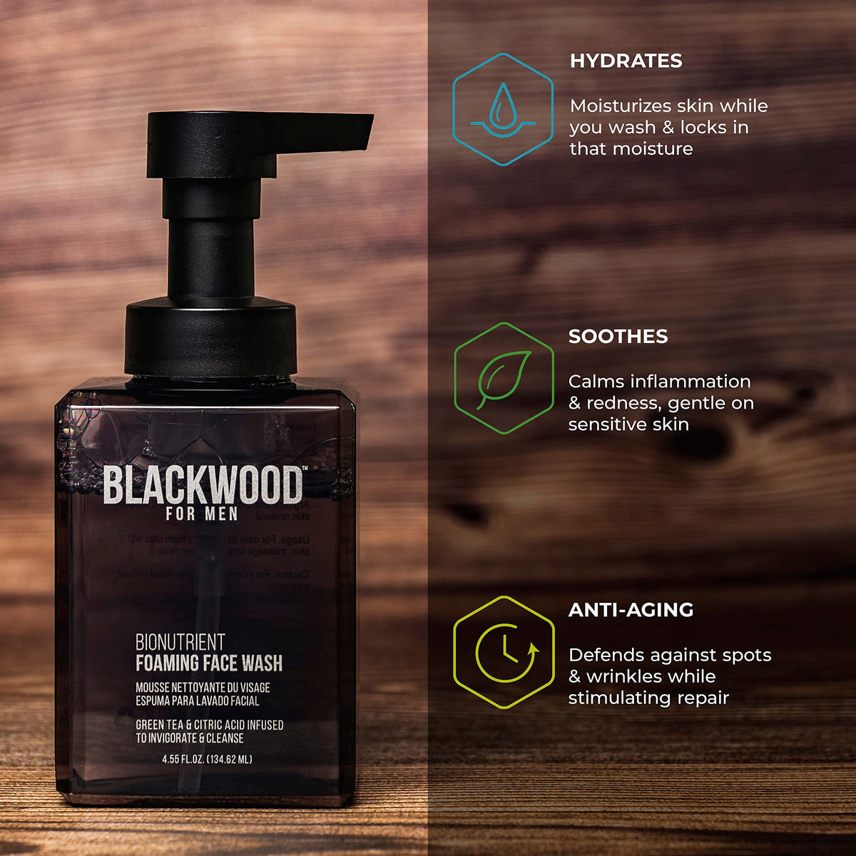 Blackwood For Men BioNutrient Foaming Face Wash - Gentle Daily Acne Facial Cleanser For Dry to Sensitive Skin - Deep Cleanse for Exfoliation - Paraben Free, Sulfate Free, & Cruelty Free (4.45 oz)
