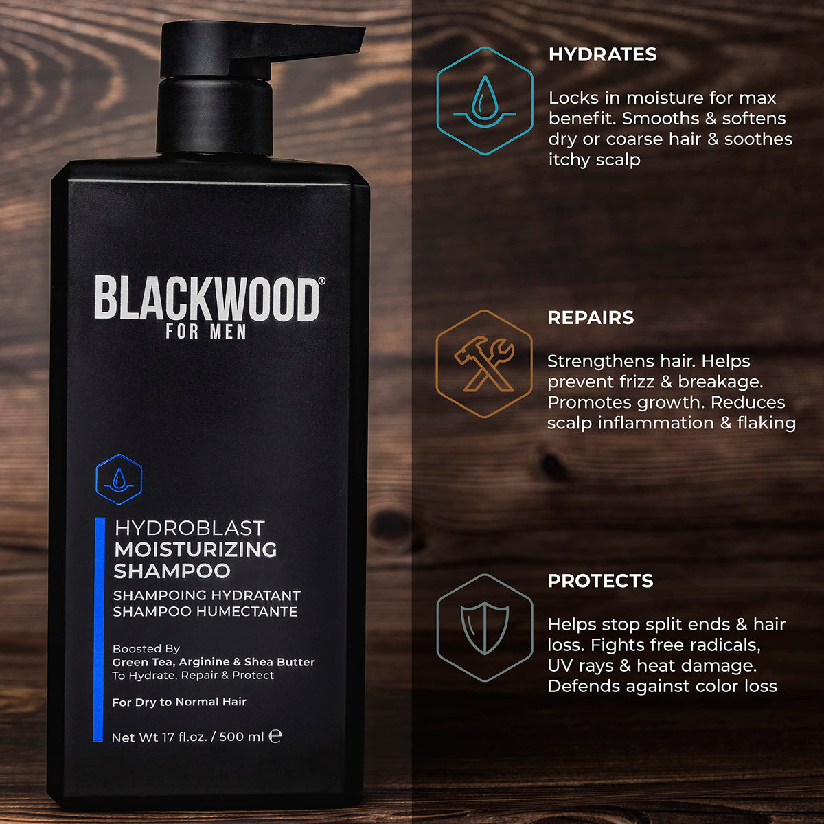 Blackwood For Men Hydroblast Moisturizing Shampoo - Men's Shampoo for Coarse, Dry, & Curly Hair - Infused with Ginseng & Ginger- Natural Vegan Formula -Sulfate Free, Paraben Free & Cruelty Free(17 Oz)