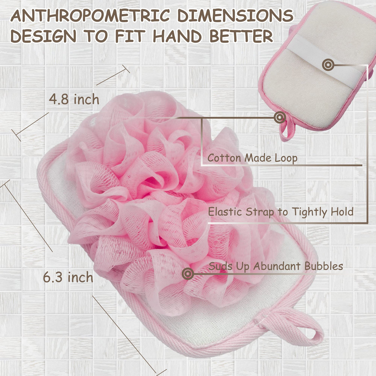 Bleu Bath (2 Pack) Exfoliating Bath Sponge Body Loofah Mitt Pad Shower Pouf Elastic Hand Strap Mesh Sponge Shower Scrubber