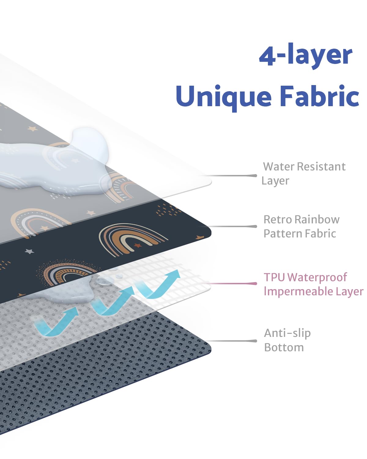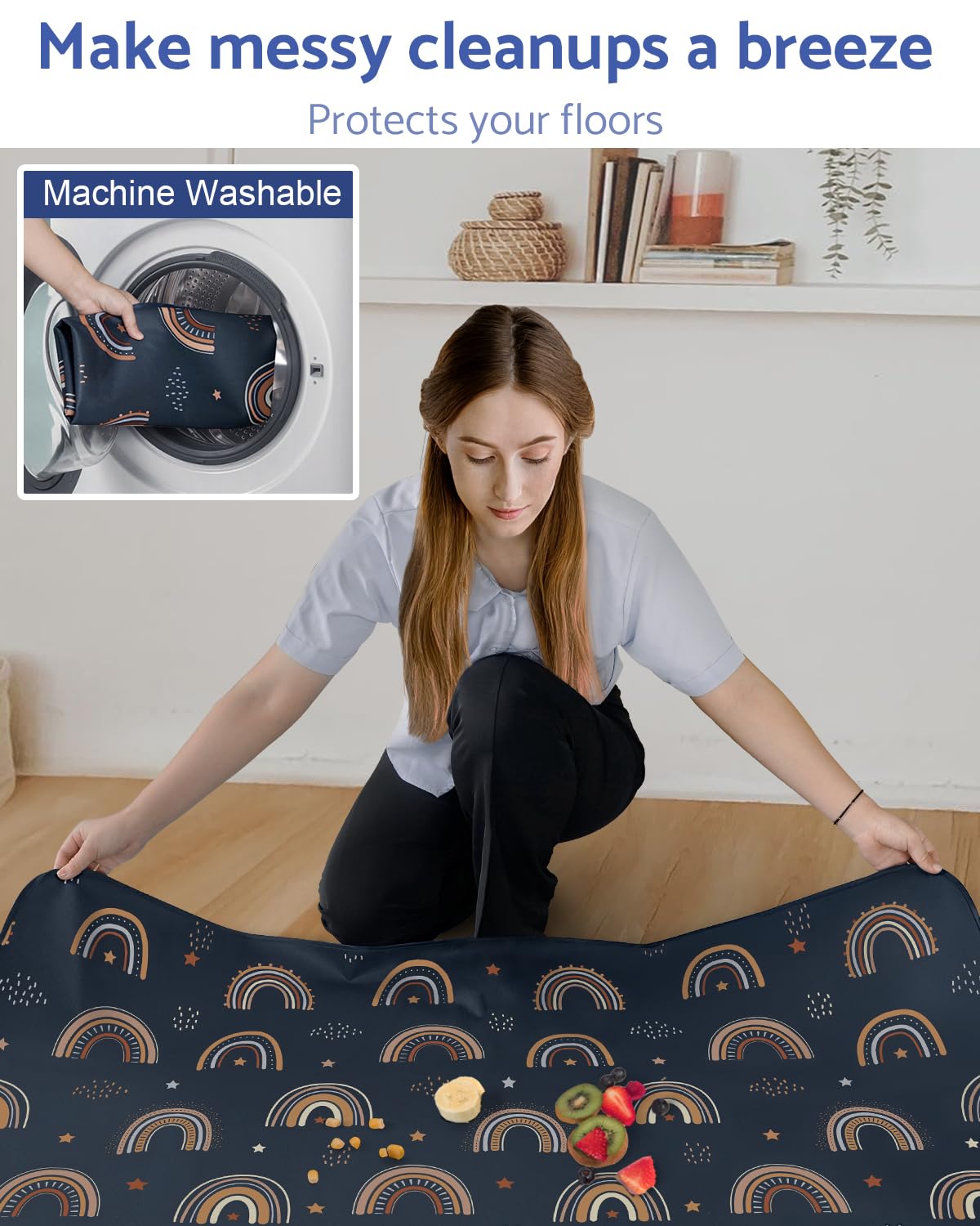 Blissful Diary Baby Splat Mat for Under High Chair, 50.4 x 50.4 Inch Wipeable Splash Mat, Waterproof and Washable, Anti-Slip Floor Protector, Retro Rainbow