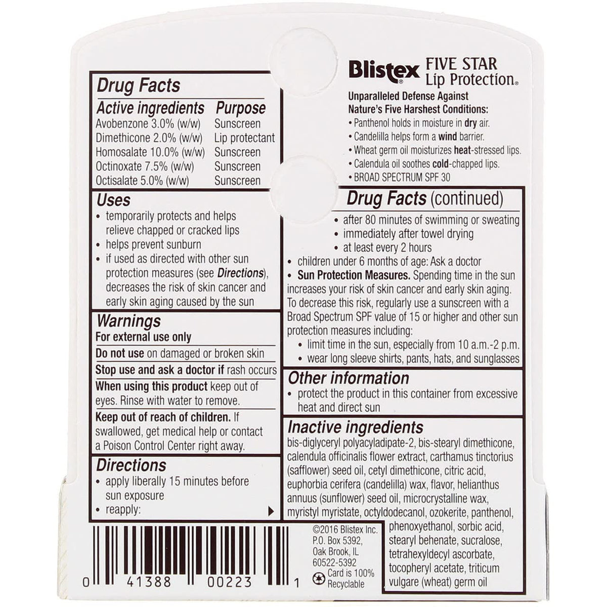 Blistex Five Star Lip Protection SPF 30 Lip Protectant 0.15 OZ (Pack of 12)