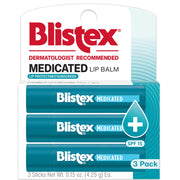 Keep your lips hydrated and protected with Blistex Medicated Lip Balm. This 0.15 oz pack of 3 offers SPF 15 sun protection, sealing in moisture with an easy glide formula for full coverage and comfort.