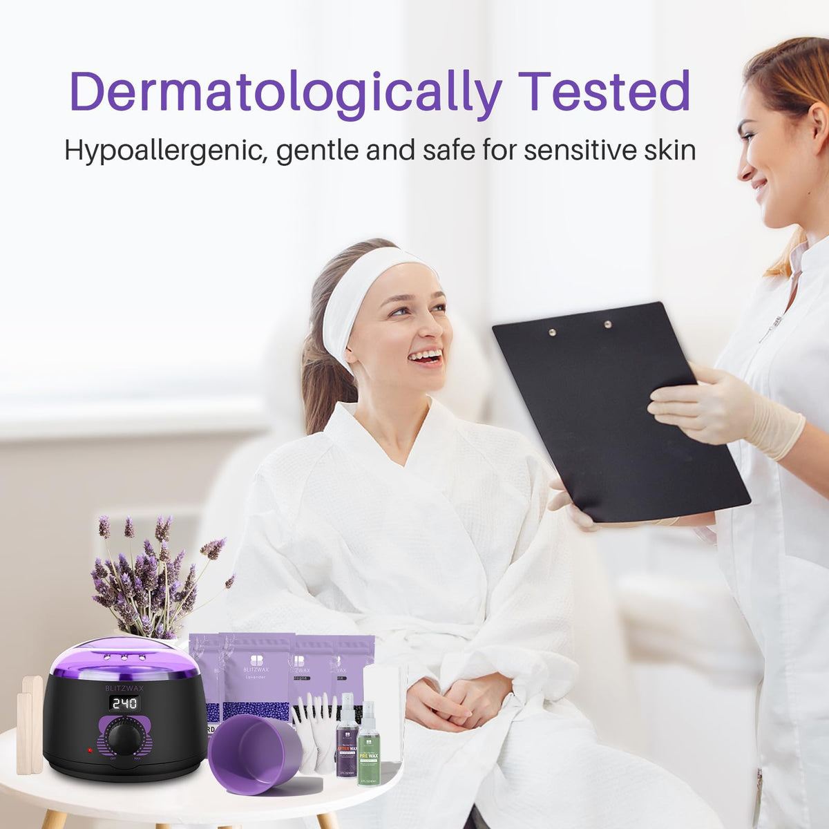 BLITZWAX Brazilian and Bikini Waxing Kit for Women, Hard Wax Warmer for Face, Legs and Body, At Home Hair Removal Kit, Beginner Friendly, Digital Fast Heating, 51 Wax Items