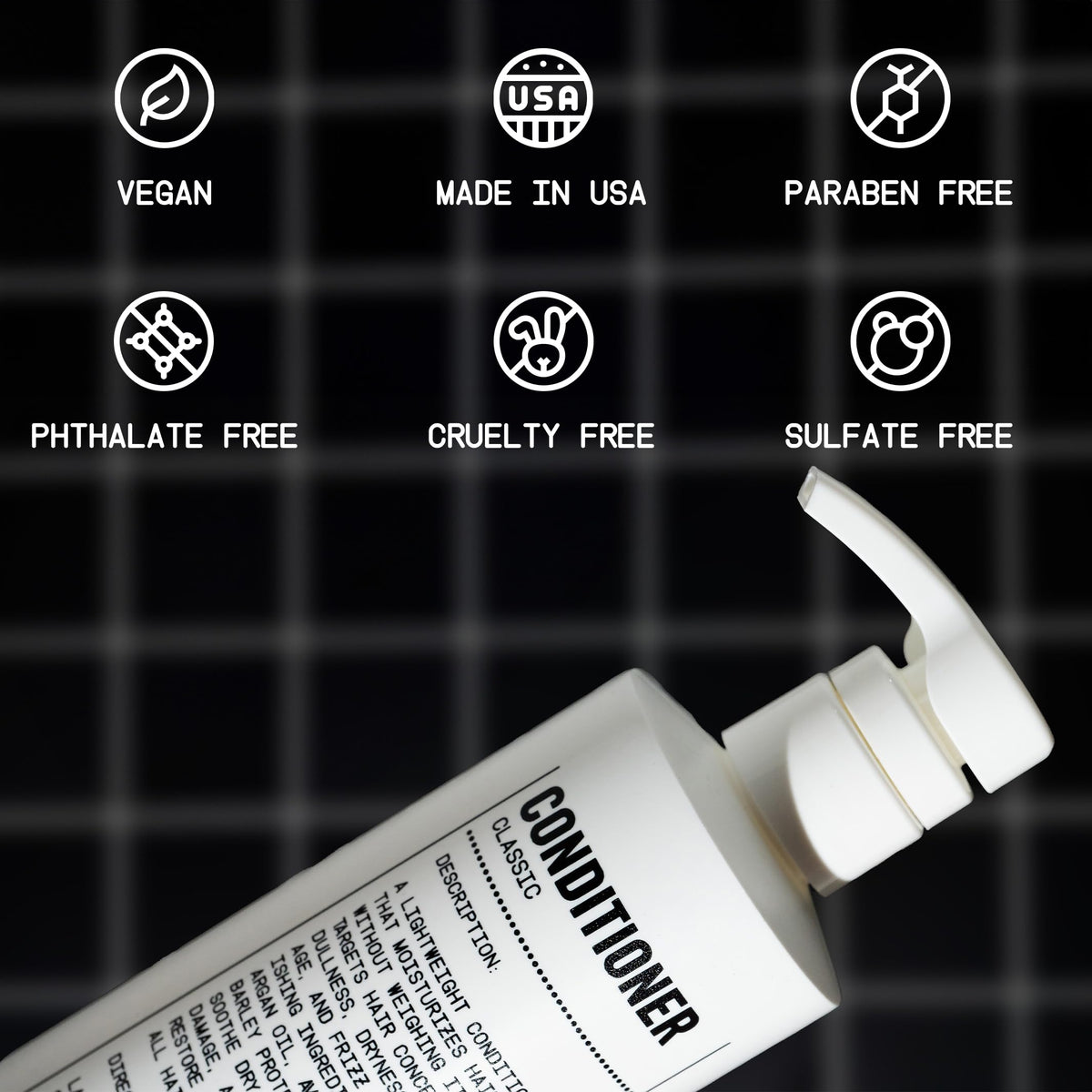 Short Product Description :: Made without parabens, phthalates, or sulfates, our conditioner is vegan, cruelty-free, and made with 98% natural ingredients. Plus, our products are made in the USA.