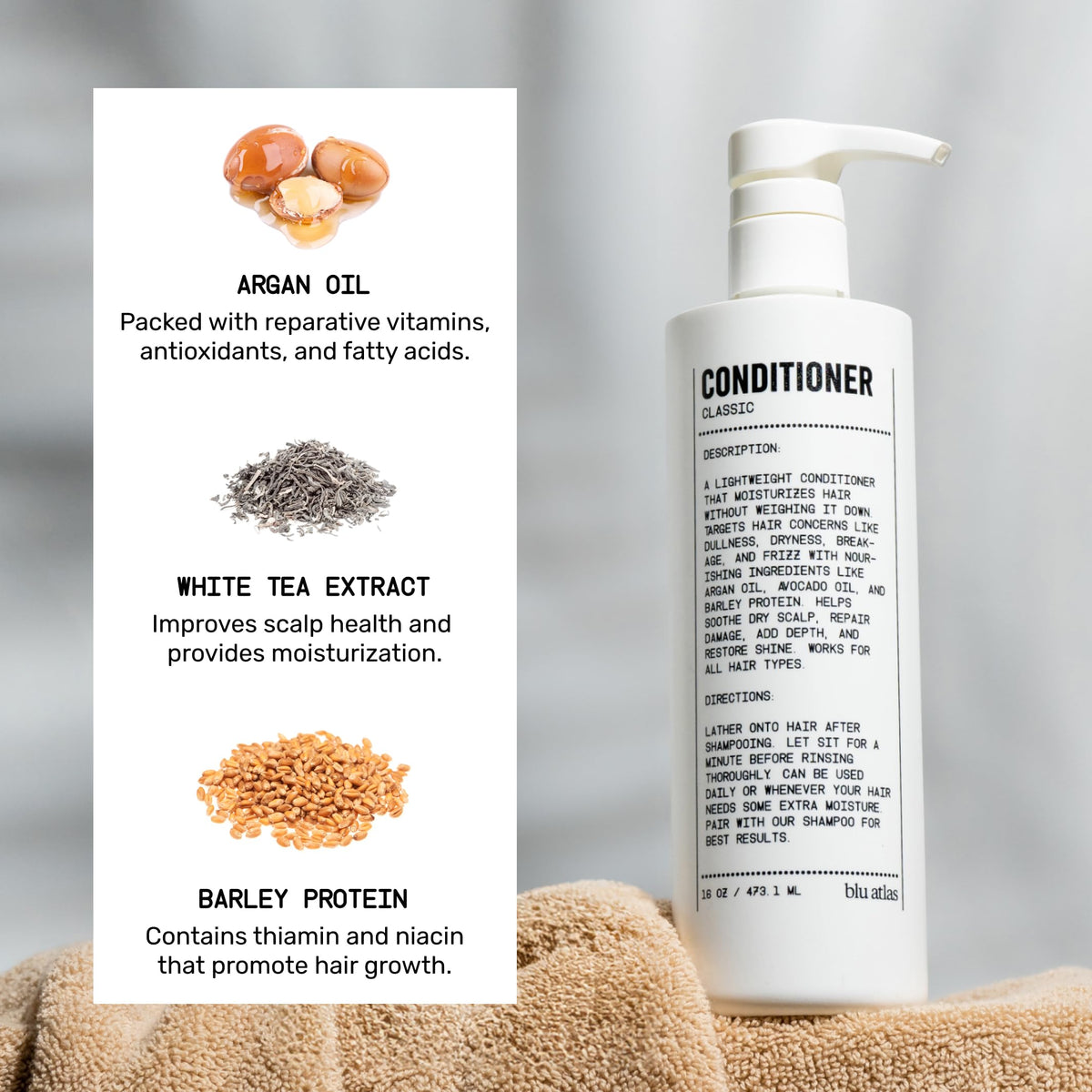 Blu Atlas Men's Natural Conditioner - For All Hair Types - Deep Moisturizing and Scalp Soothing, Vegan Sulfate and Paraben-Free- Classic Scent, 16 oz.