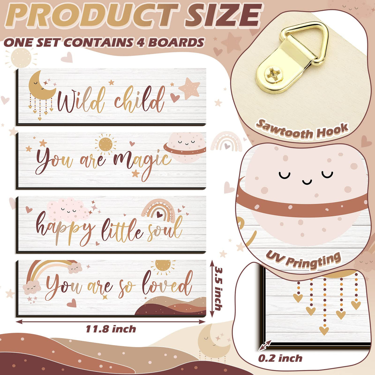 Add a touch of positivity to any space with the Blulu Boho Rainbow Inspirational Decor Art. This wooden wall hanging sign serves as a reminder of love and encouragement, perfect for bedrooms, nurseries, or dorm rooms.