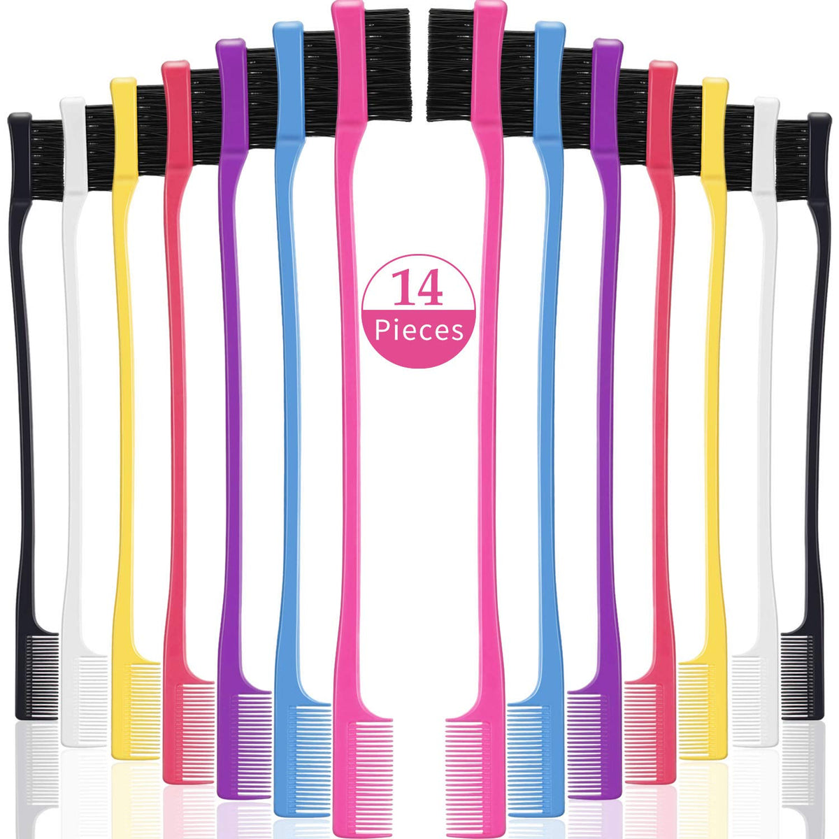 14 Pieces Hair Edge Brush Double Sided Control Hair Brush Comb Set Smooth Comb Grooming, 7 Colors