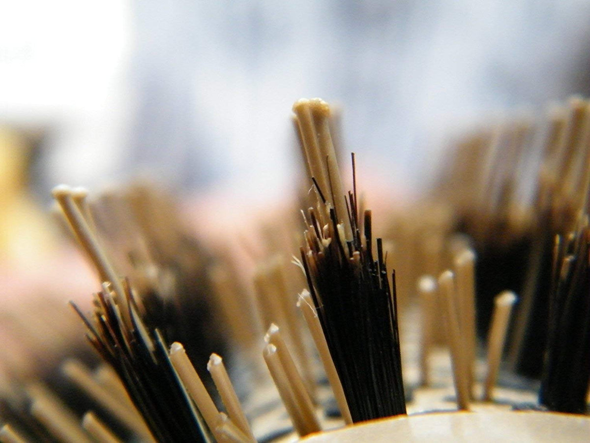 Directions :: Hold the hairbrush in one hand and brush your hair from roots to ends.