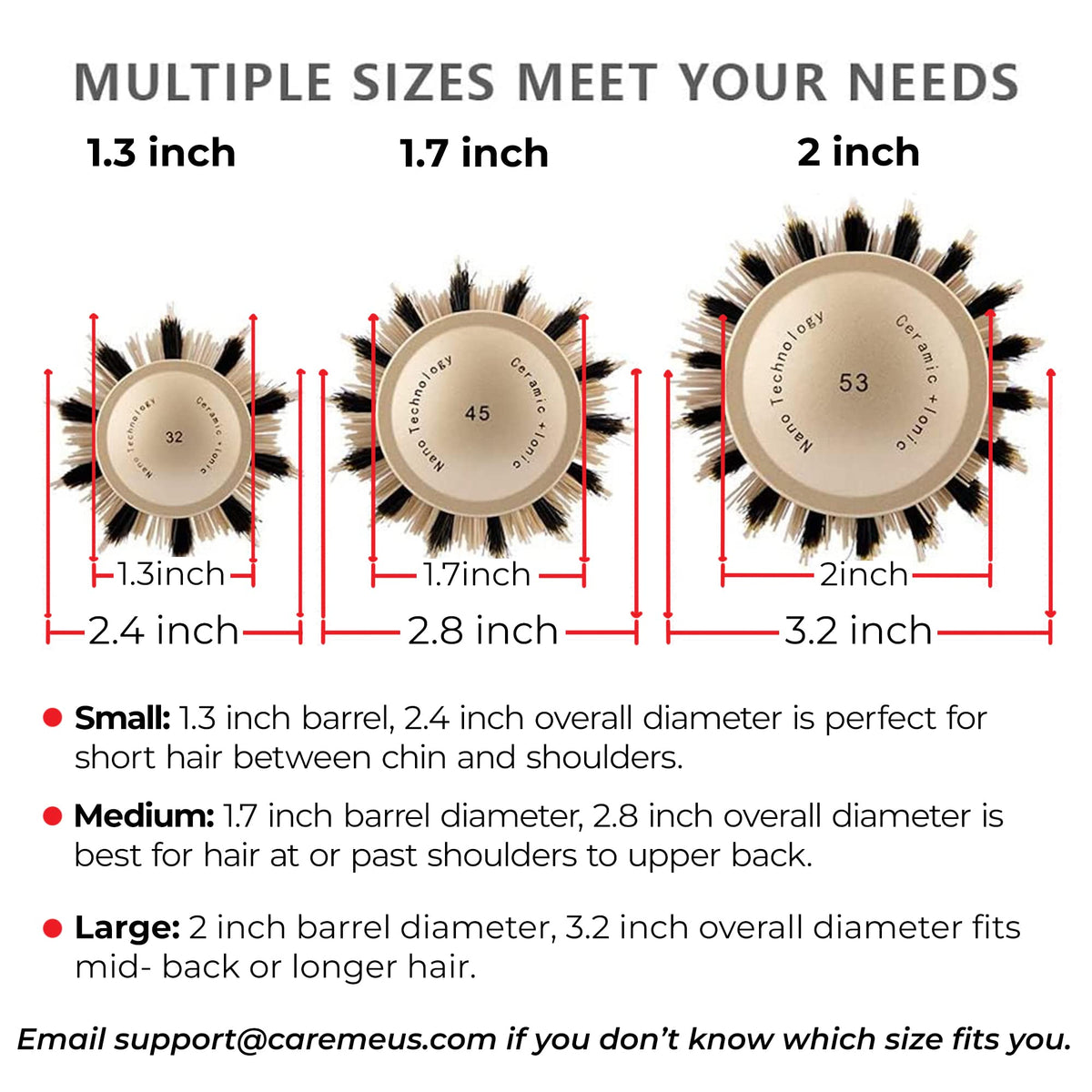 Care Me Professional Blow Dry Round Hair Brush with Natural Boar Bristles for Healthy Shiny Frizz-Free Straight or Curl Hair (2 Inch)
