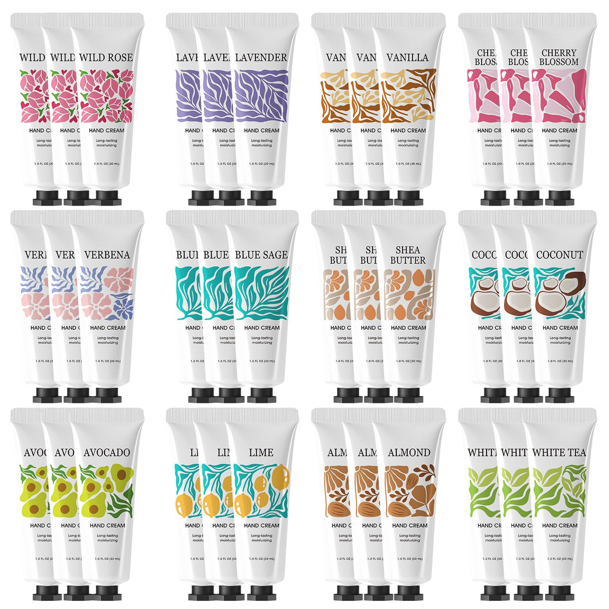 Pamper your hands with BODY & EARTH # LOVE 36 Pack Hand Cream for Women Gifts Moisturizing Hand Lotion Cream. This bulk mini hand lotion set is a perfect gift for women, offering luxurious care for dry hands.