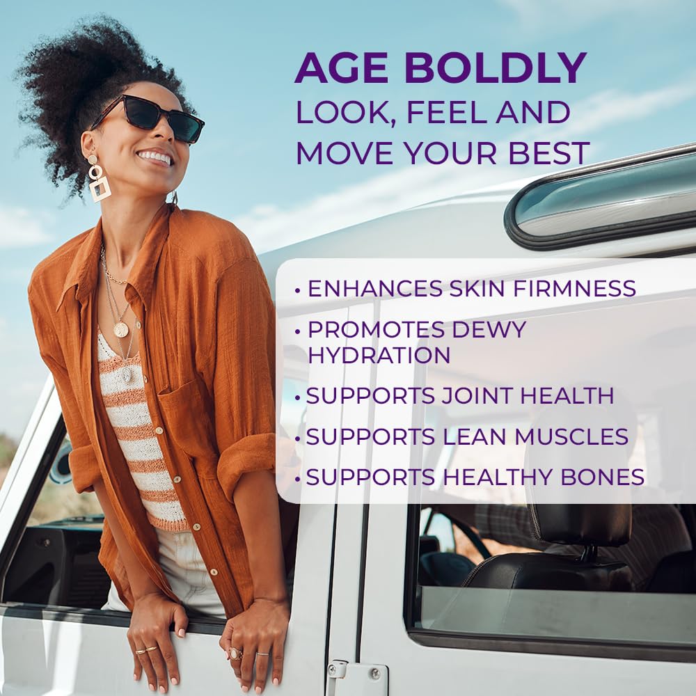 Ingredients: Collagen, Hyaluronic Acid, Resveratrol, Black Current Extract