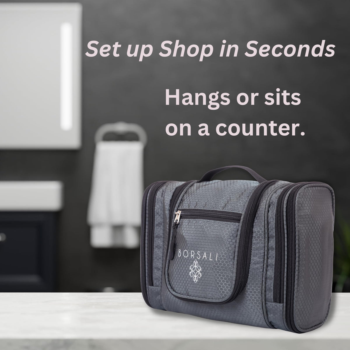 Stay organized while traveling with the BORSALI Hanging Toiletry Bag. With 22 compartments, a mirror, and a sturdy hook, this bag keeps your essentials accessible and secure wherever you go.