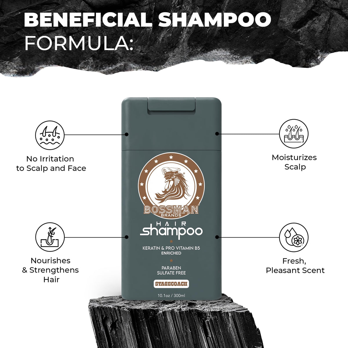 Bossman Hair Shampoo for Men – Natural Moisturizing Men's Shampoo with Keratin & Vitamin Pro5 Enriched - Paraben & Sulfate Free (Stagecoach Scent)