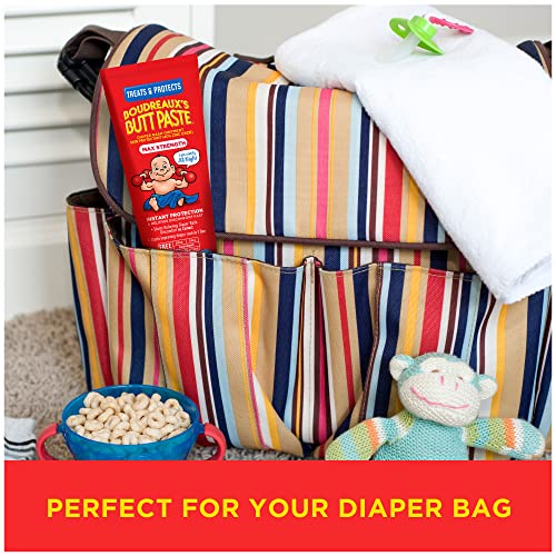 Short Product Description :: Developed by a pharmacist and father of four, Boudreaux's Butt Paste Brand has been trusted for over 40 years by pediatricians and parents to help protect irritated skin due to diaper rash and to instantly seal out wetness. When used daily, it is also a great way to help prevent diaper rash. Boudreaux's Butt Paste Maximum is a thick, cream-like protective diaper rash ointment with 40% Zinc Oxide. It provides overnight protection, starts to soothe on contact, seals out moisture and helps keep baby’s boo-tay dry. Boudreaux's Butt Paste Maximum Strength is free from dyes, preservatives, parabens and talc.