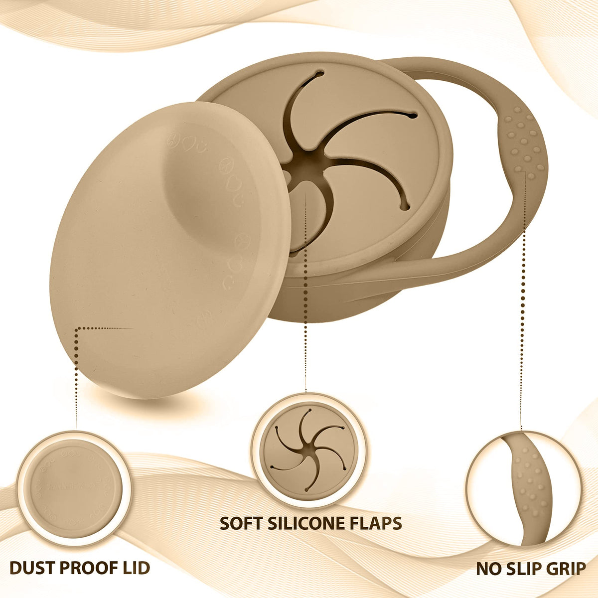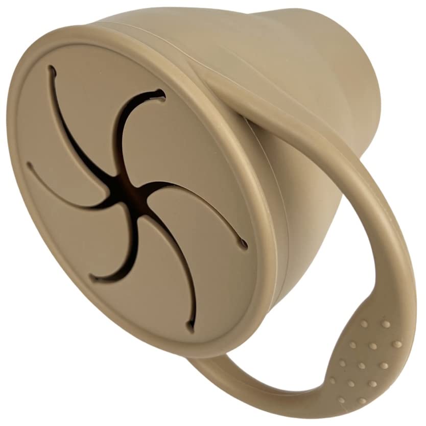 BraveJusticeKidsCo. | Snack Attack Cup | Collapsible Silicone Container | Toddler and Baby Catcher Lid (Warm Sand)