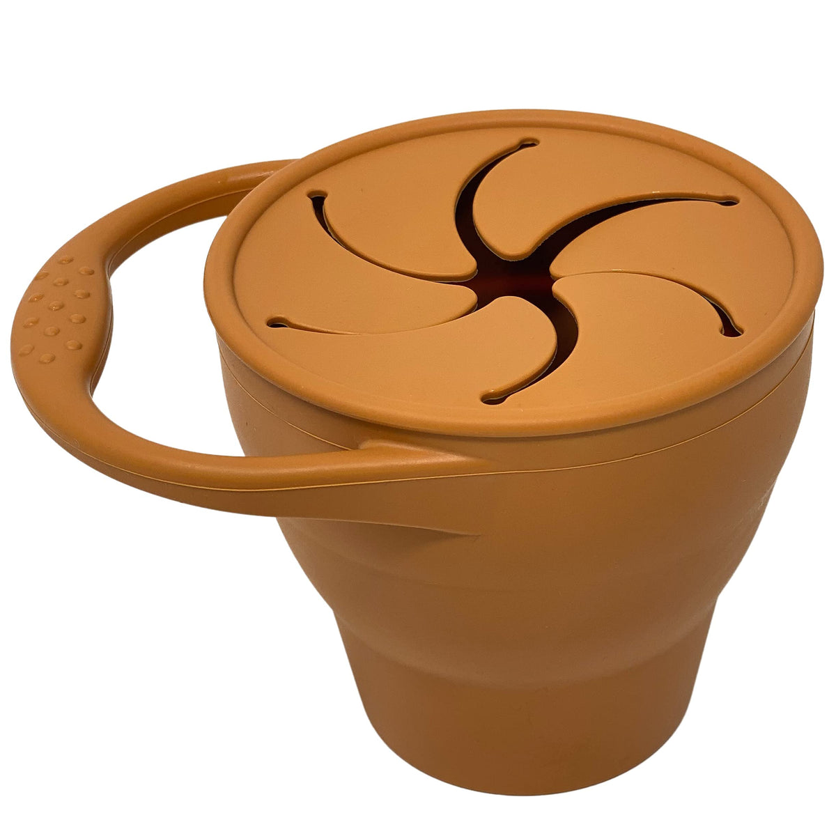 BraveJusticeKidsCo | Snack Attack Snack Cup | Collapsible Silicone Snack Container | Toddler and Baby Snack Catcher Lid (Honey Ginger)
