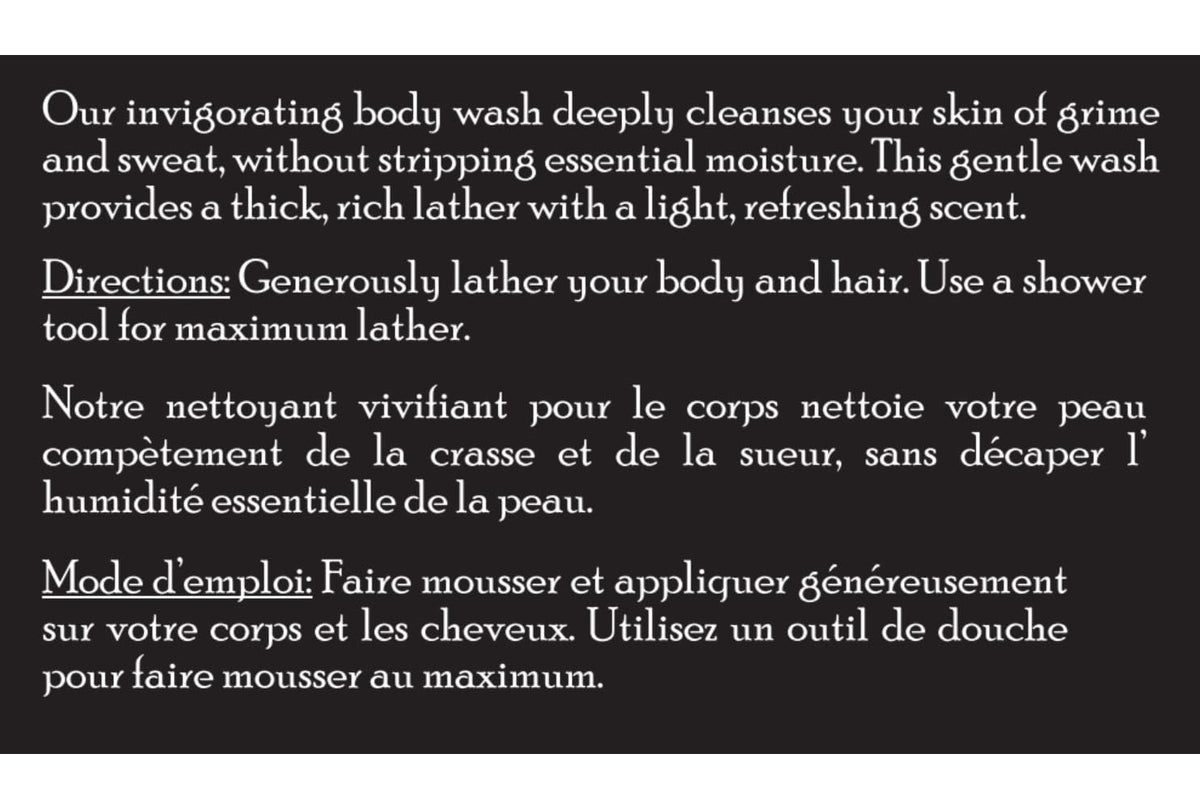 Ingredients: Aloe Leaf Juice, ProVitamin B5, Lavender, Silk Protein Amino Acid Blend, Sodium Lauryl Sulfoacetate, Disodium Laureth Sulfosuccinate, Vegetable Glycerin, Cocamidopropyl Betaine, Phenoxyethanol, Roman Chamomile Distillate, Hydrolyzed Protein, Rosehip Fruit Oil, Jojoba Seed Oil, Vitamin E, Tetrasodium EDTA, Peppermint Essential Oil, Tea Tree Leaf Essential Oil. Certified Organic. We only use the highestgrade natural ingredients. We use 100 certified organic ingredients when possible and NEVER any Petrochemicals, sulfates, parabens, phthalates, synthetic fragrance or color, TEA, DEA, Glycols, silicones, or PEGs. Tested only on humans. In simple terms We make the purest products a man can use with 100 assurance youre not putting suspect chemicals on your body.