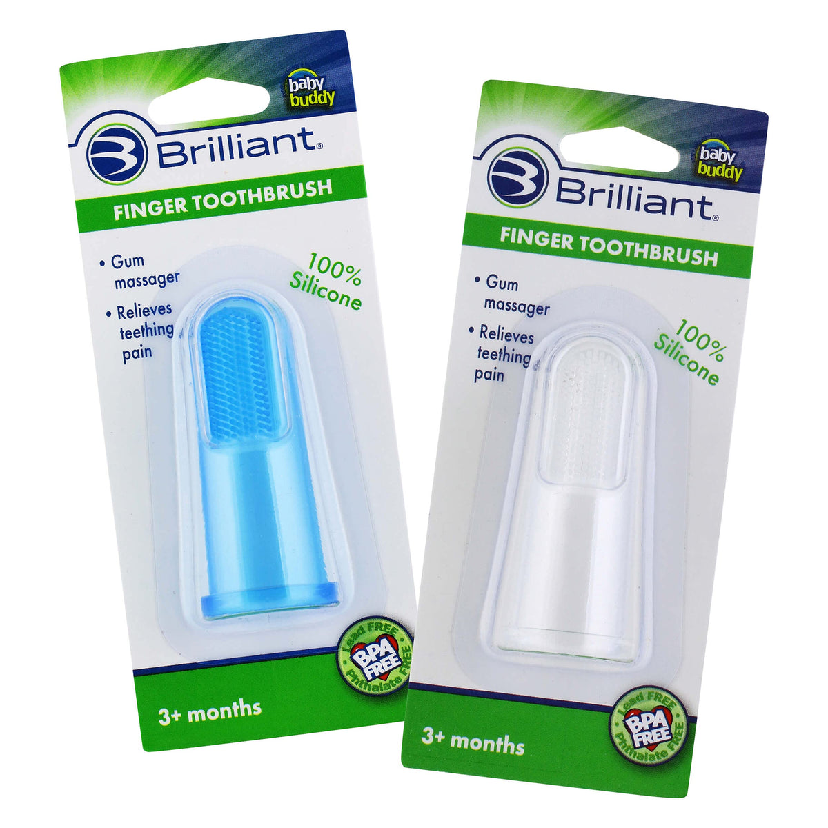 Introduce your little one to oral care with the Brilliant Baby Finger Toothbrush. Designed as a gum massager and teether brush, it's perfect for infants and toddlers aged 3 months and up. This set includes 2 brushes in Blue/Clear.