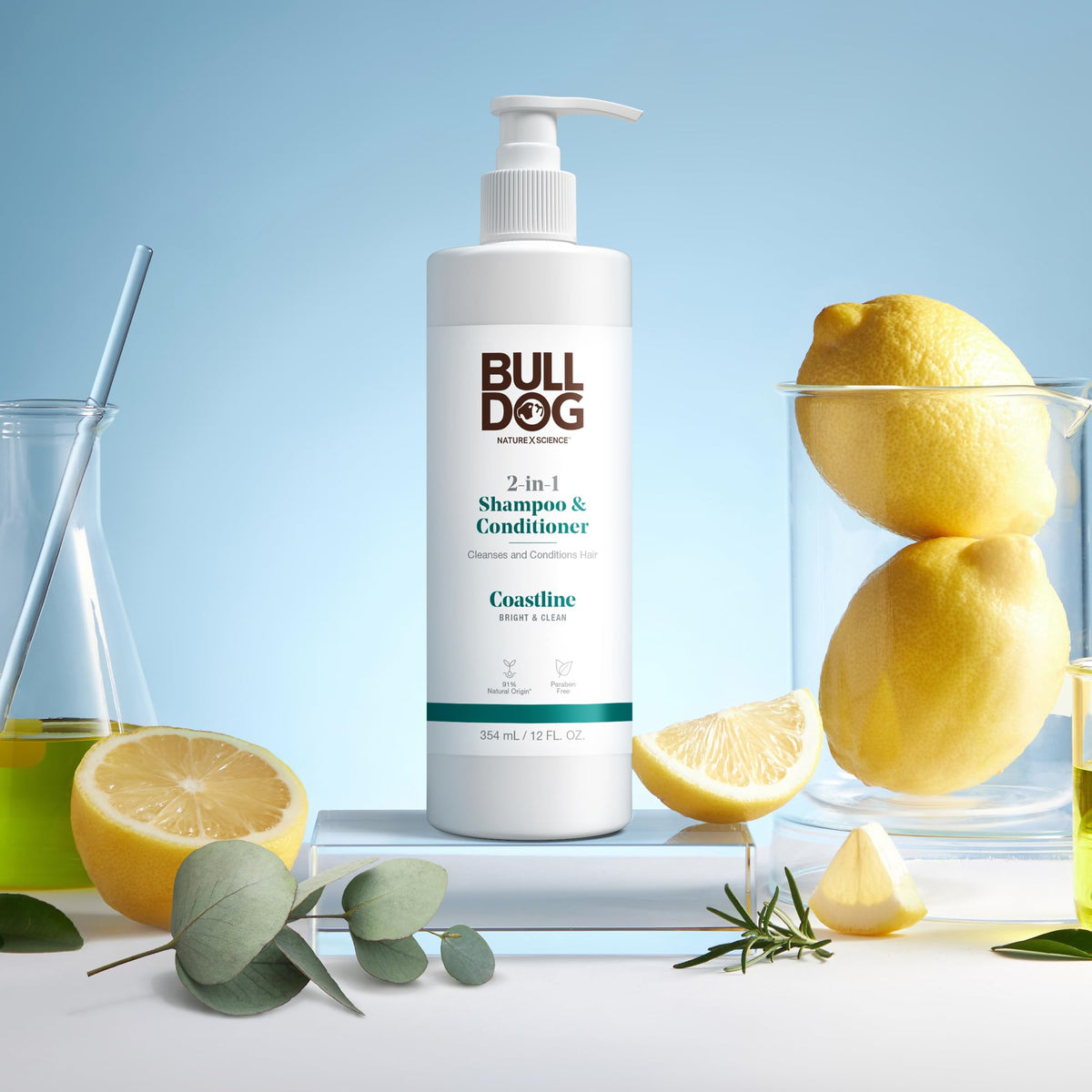 Indulge in the Coastline freshness with Bulldog Mens Skincare and Grooming 2-in-1 Shampoo and Conditioner. This 12 oz. formula combines cleansing and conditioning benefits in one, leaving your hair clean, soft, and lightly scented.