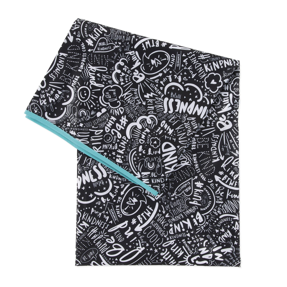 Bumkins Baby Splat Mat for Under High Chair, Babies Toddlers Eating Mess Mat, Waterproof Reusable Cloth for Arts and Crafts, Play Mat for Kids, Floors or Tables 42inx42in, Born This Way Be Kind Black