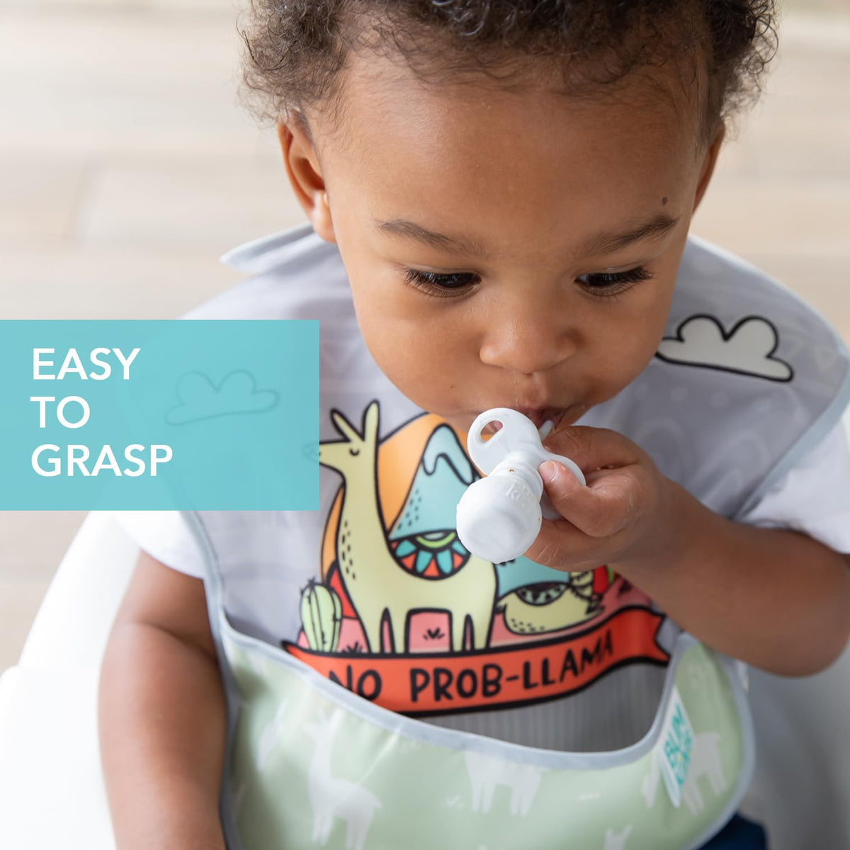 The Bumkins Baby Utensils Set in Marble is perfect for self-feeding and baby-led weaning. These silicone spoons and practice fork provide a soft and safe eating experience for babies starting solids.