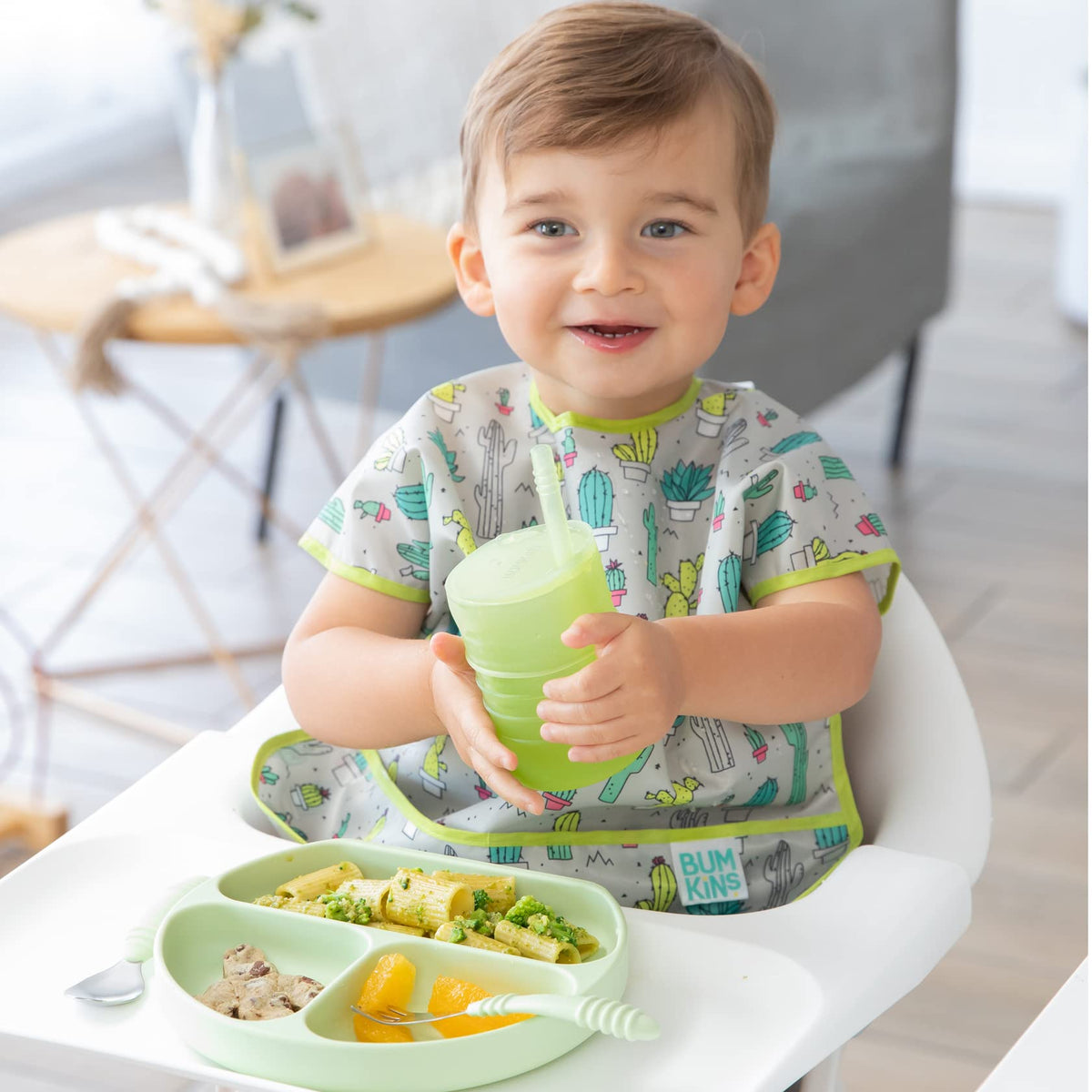 Make mealtime mess-free with Bumkins Bibs. These large, short-sleeve bibs for 1-3-year-olds are designed to keep your little one clean and comfortable during feeding.