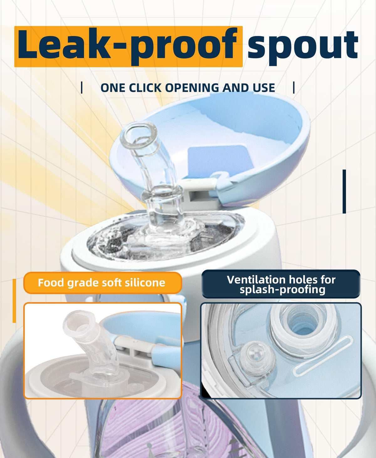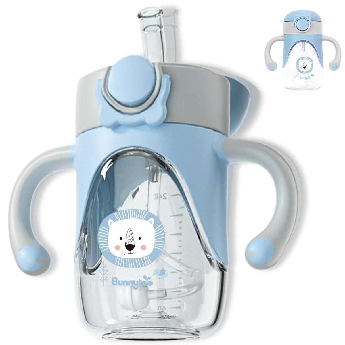 Bunnytoo Baby Sippy Cup with Weighted Straw for Infants 6-12 Months, 8oz Toddler Drinking with Handles, BPA-Free, Transition Trainer for 1+ Year Old (Blue)