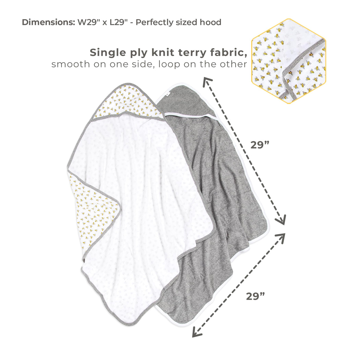 Burts Bees Baby Infant Hooded Towels Honey Bee Organic Cotton, Unisex Bath Essentials and Newborn Necessities, Soft Nursery Towel with Hood Set, 2-Pack Size 29 x 29 Inch