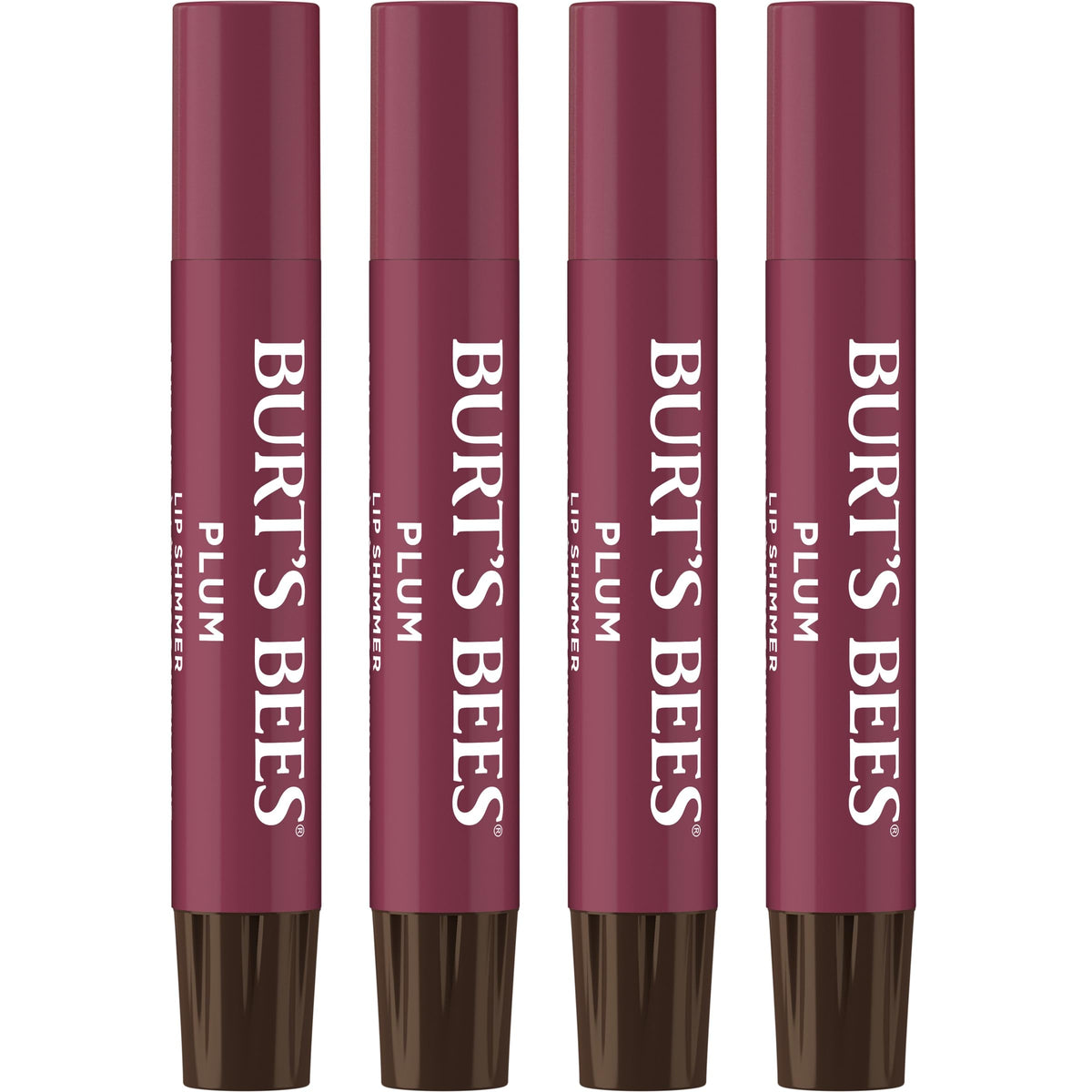 Burt's Bees Shimmer Lip Tint Set offers tinted lip balm sticks that provide all-day hydration with a natural origin glowy pigmented finish. This 4-pack in Plum shade ensures buildable color for a personalized look.