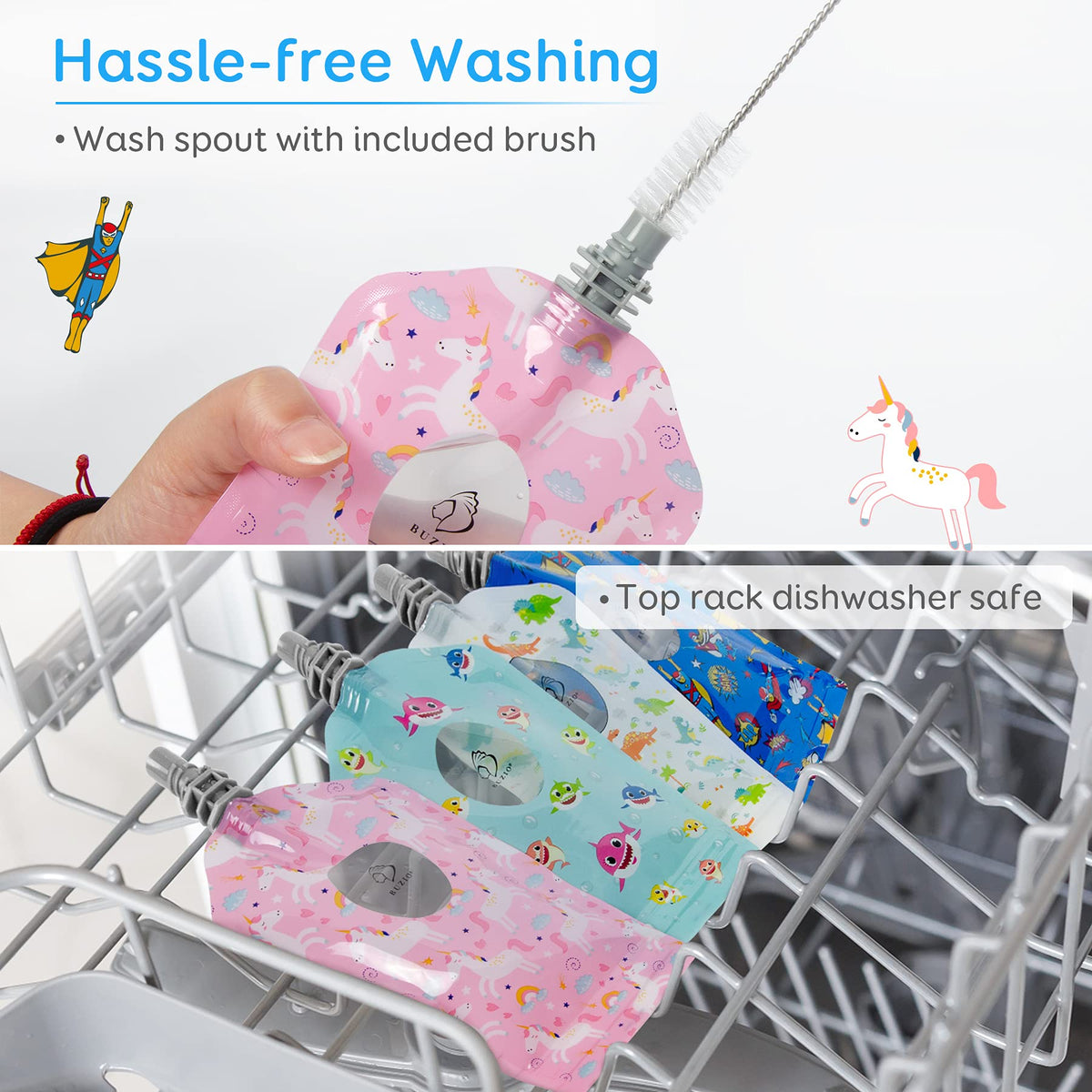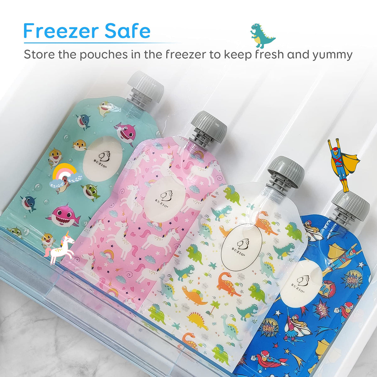 BUZIO Reusable Food Pouches, 12 Packs 5oz Toddlers Food Storage Pouch, Double Zipper Squeeze Pouches Freezer Safe for Kids DIY Homemade Organic Puree