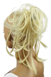 Elevate your hairstyle with the CAISHA Jumbo Scrunchie Braided Updo. This platinum blonde hairpiece adds volume and texture to your bun effortlessly, giving you a glamorous look in seconds.