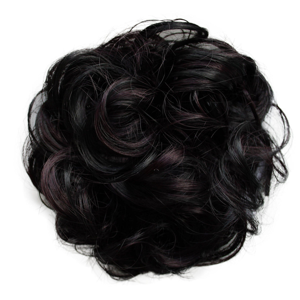 The CAISHA Messy Scrunchie Bun Hairpiece is a voluminous wavy hair accessory made from heat-resistant synthetic fibers. This black dark red mix hairpiece adds instant volume and style to your look.