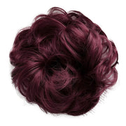 CAISHA Messy Scrunchie Bun Hairpiece in wine red adds a touch of glamour to your hairstyle. This voluminous and wavy hairpiece, made with heat-resistant synthetic fibers, is perfect for creating elegant and chic looks.