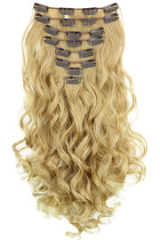 PRETTYSHOP XXL Set 8 pcs 24 Clip In Hair Extensions Full Head Hairpiece Wavy Curled Or Straight Heat-Resisting Div. Colors (blonde mix curled #27T613 CES4-1)