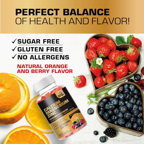 Calcium Magnesium Zinc Supplement Gummies for Kids Toddler & Adults - Enhanced Absorption with Vitamin D3 & K2 - Sugar Free Gluten Free Cal Mag Zinc Vegan Chewable Complex Calcium Gummies