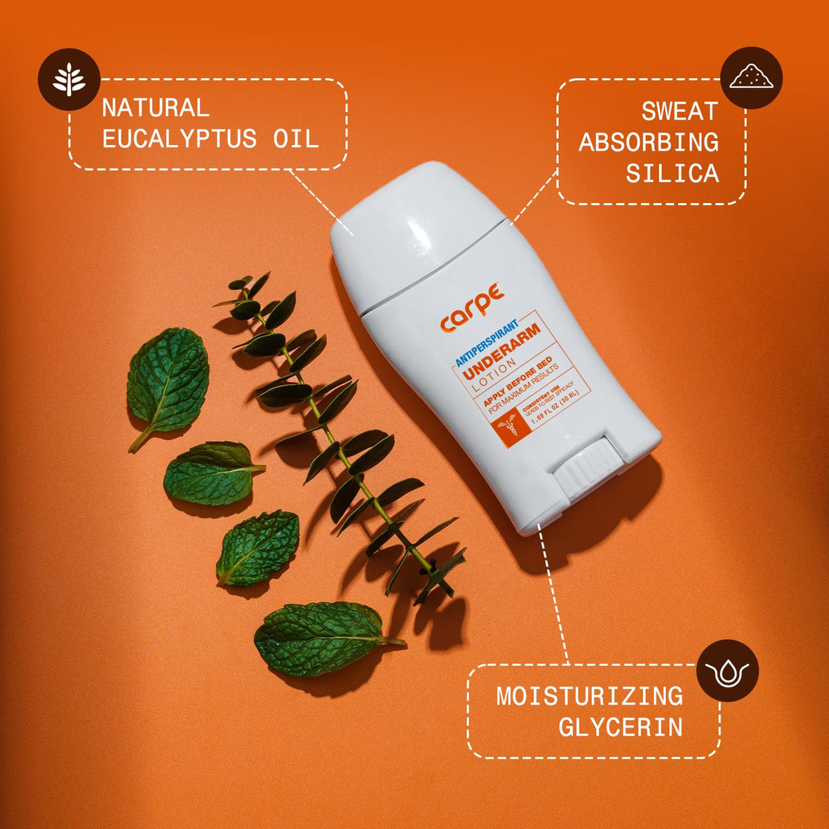 Carpe Underarm Antiperspirant and Deodorant, Clinical strength with all-natural eucalyptus scent, Manage hyperhidrosis and combat excessive sweating without irritation, Stay fresh and dry all day long