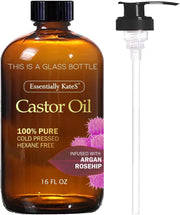 Castor Oil 16 Fl Oz (Glass Bottle) - Argan + Rosehip - A Huge Glass Bottle with a Pump - 100% Pure and Natural, Cold Pressed, and Hexane-Free - Hair Oil, Body Oil
