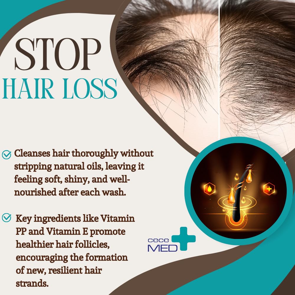 Cece of Sweden Stop Hair Loss Shampoo, Strengthens Scalp Collagen, Reduces Hair Loss, Boosts Volume, Long-Lasting Concentrated Formula, 10.1 fl oz, For Men and Women