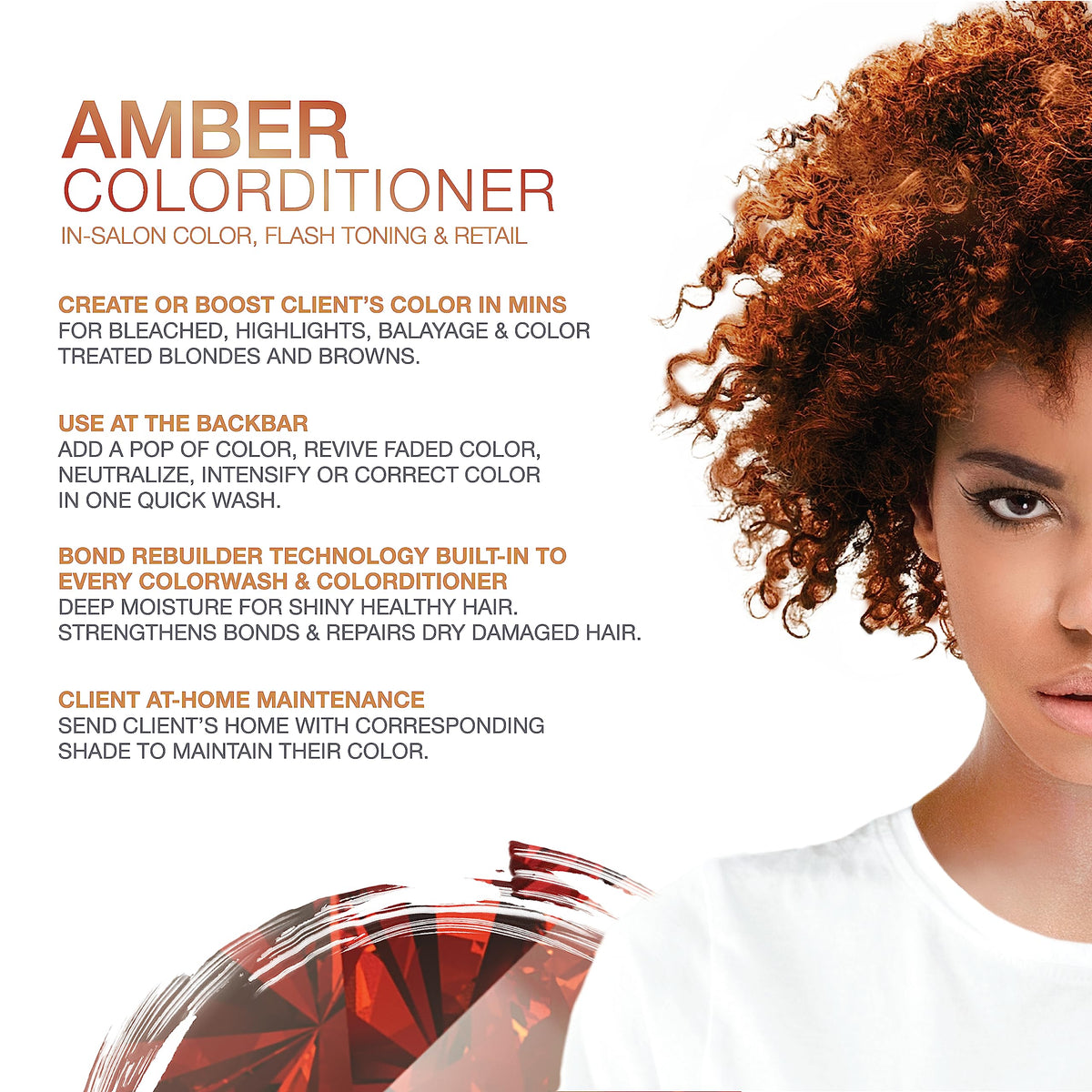 Celeb Luxury Gem Lites Amber Colorditioner is a color-depositing conditioner that maintains and refreshes copper to medium auburn tones. Keep your hair vibrant and beautiful with this innovative product.
