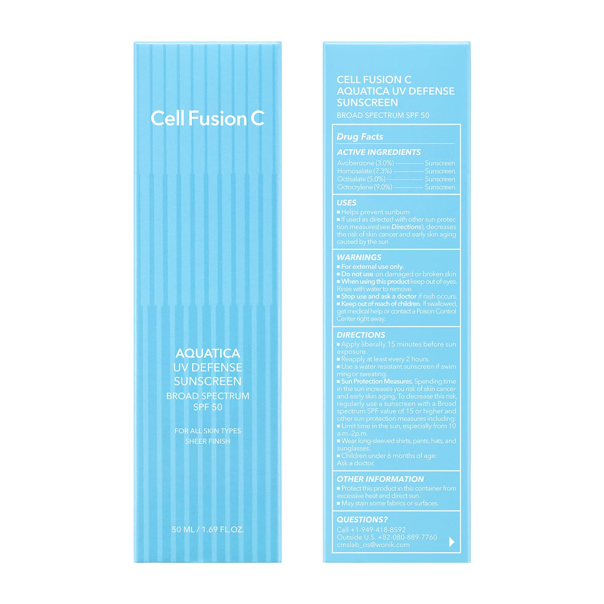 Cell Fusion C Aquatica UV Defense Face Sunscreen SPF 50, Hydrating SPF Moisturizer, Lightweight & No White Cast, Korean Sunscreen for Face, 50ml / 1.69 fl.oz