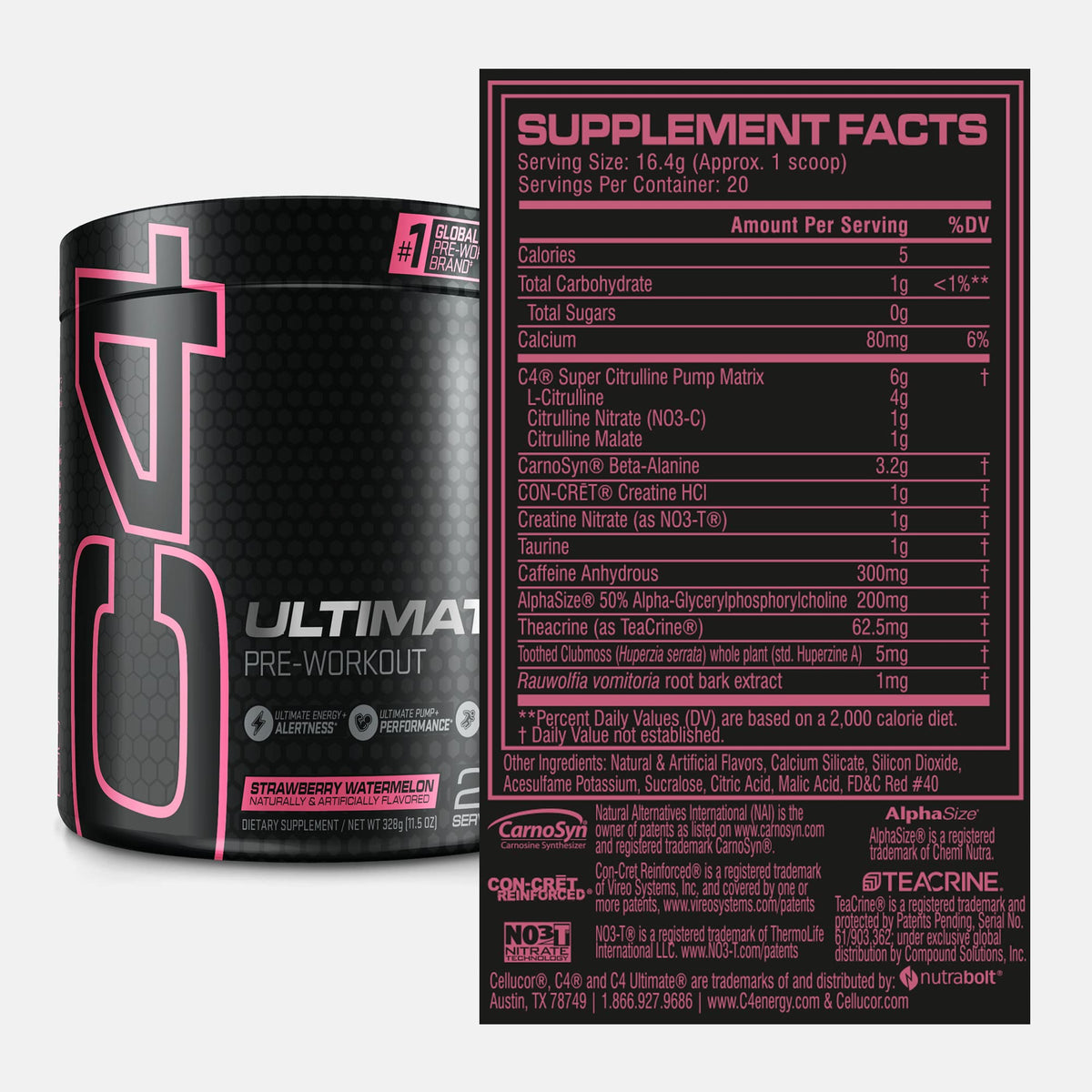 Get ready for your workout with Cellucor C4 Ultimate Pre Workout Powder in Watermelon flavor. This sugar-free preworkout energy supplement is specially formulated for both men and women to enhance performance and endurance.