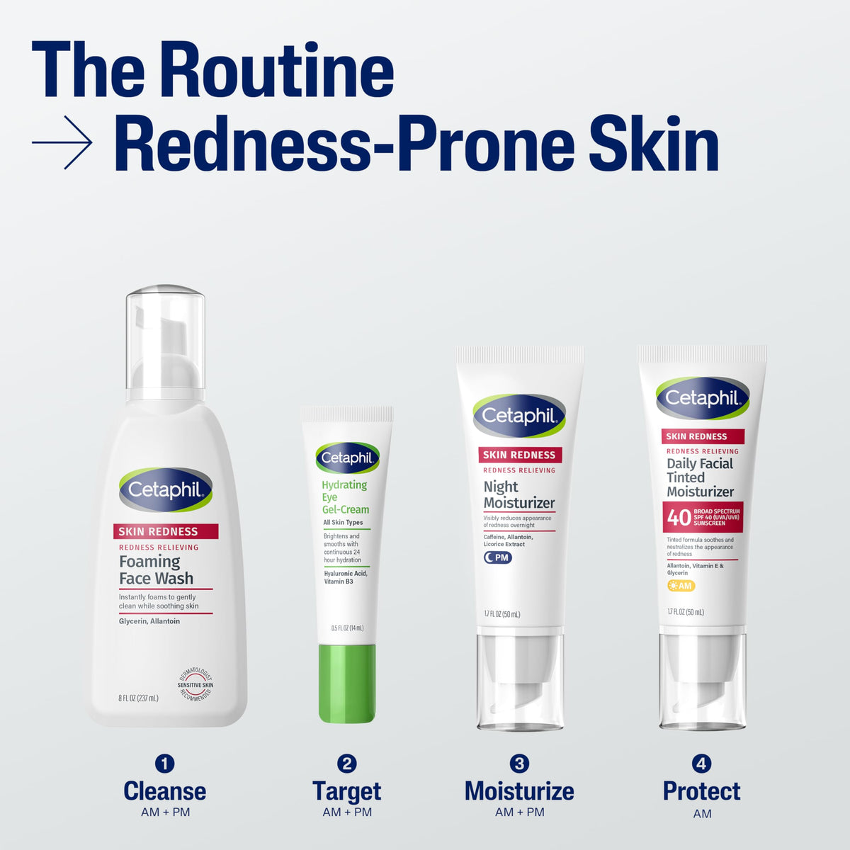Cetaphil Redness Relieving Foaming Face Wash calms and cleanses sensitive skin without overdrying, providing gentle care for redness-prone skin.