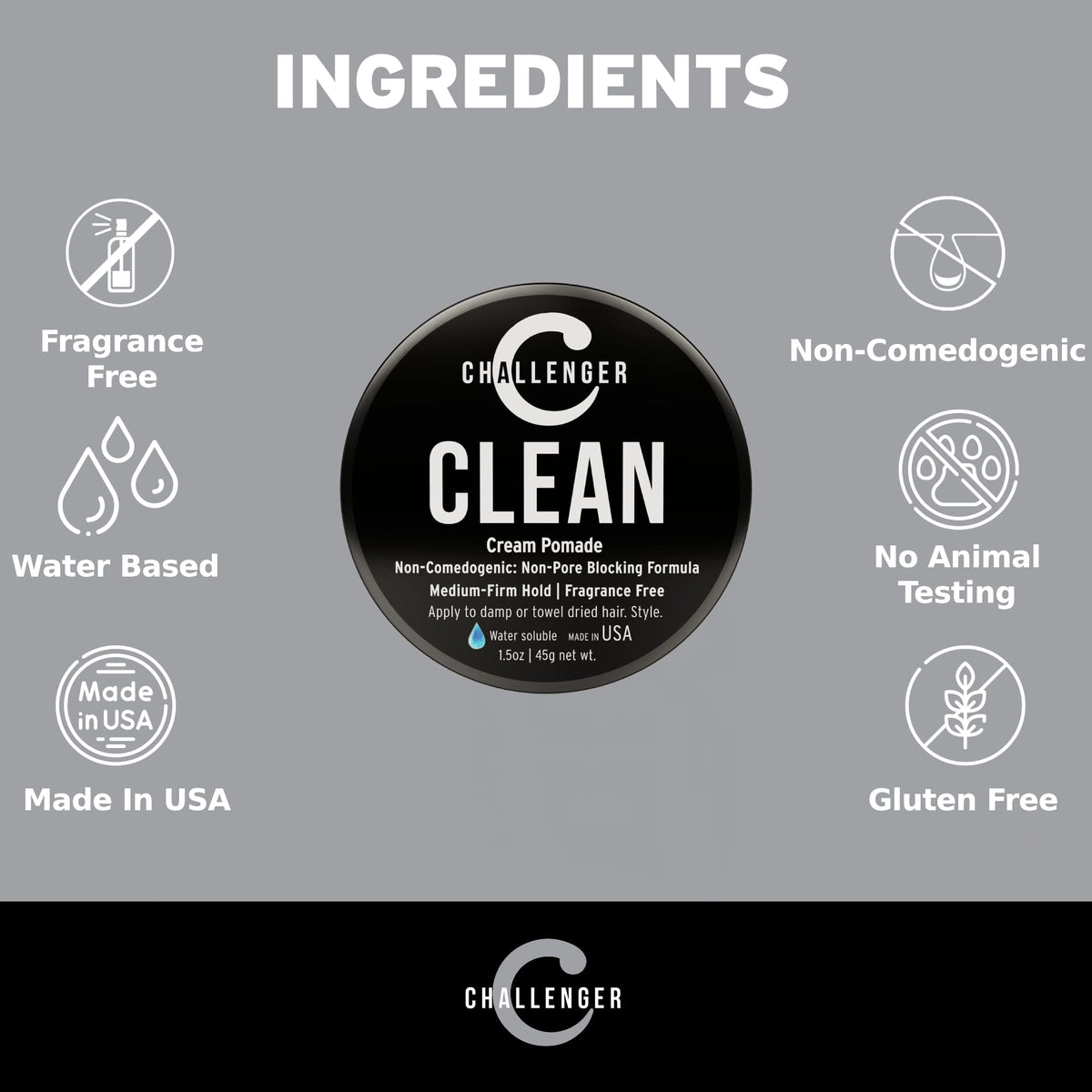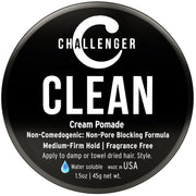 New Matte Cream Pomade - Non-Comedogenic, Fragrance Free - Challenger Clean 3oz - Medium Firm Hold - Non-Pore Blocking, Shine Free, Water Based, Travel Friendly. Hair Wax, Fiber, Paste in 1 (1.5OZ)
