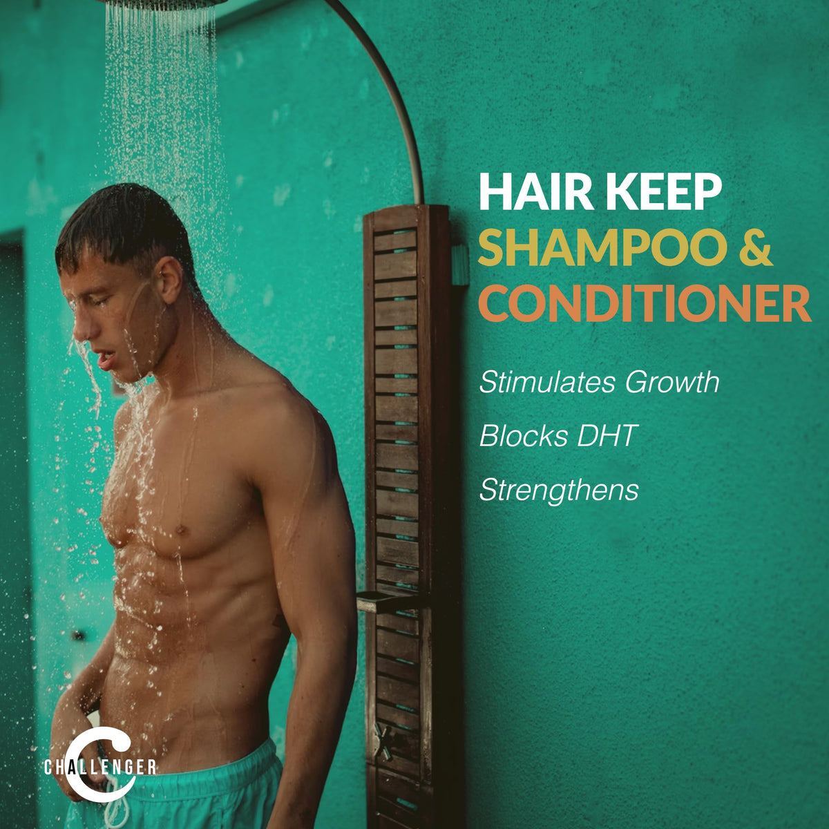 Challenger Men's Hair Keep Shampoo & Conditioner, 2X 10 Oz Bottles | Hair Growth Combo | DHT Blockers| w/Baicapil, Capixil, Rejuvasoft, HairSpa | Caffeine, Biotin, Argan Oil, Coconut Oil & more!
