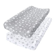Changing Pad Cover for Boys Girls 2 Pack, Lovely Print Soft Unisex Diaper Change Table Sheets, Fit 32x16 Contoured Pad, Comfy Cozy 2-Pack Cradle Sheets, Grey & White